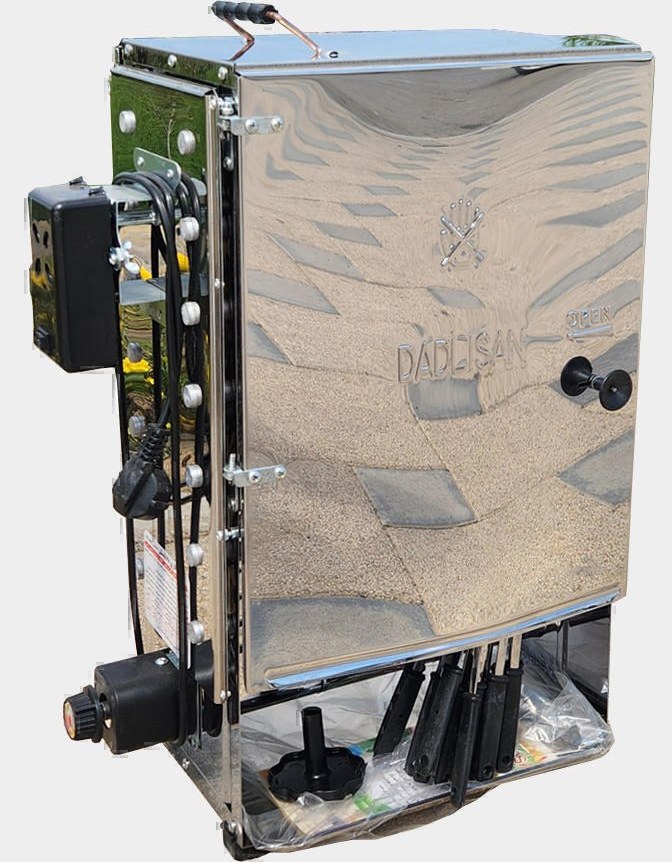 از مزایای این کباب پز دارای سیستم سیخ گردان اتوماتیک و گردش دستی سیخ ها صد در صد بدون دود بخاطر اینکه روغن حاصل از کباب ها روی شعله نریزد. دارای 28 سیخ (14 کباب زن - 14 جوجه زن)می باشد. دارای حرارت غیر مستقیم و تابشی و طراحی منحصر به فرد بوده و کم حجم می باشد، دارای عمر زیاد بوده و در هر نوبت میتواند 2 الی 2.5 کیلوگرم کباب کند قابل استفاده با گاز شهری و گاز مایع (با تعویض سر نازل) است که در موقع استفاده از گاز مایع بستن فشار شکن (ریگلاتور) الزامی است.این دستگاه دارای موتور گردان می باشد . 14 سیخ برای جوجه و 14 سیخ برای کباب برای این نوع کباب پز طراحی شده است.از مزیتهای کباب پز دادلیسان مدل 2021 2021 ، بدون دود و ایستاده بودن آن خواهد بود. کباب پز دادلیسان دارای سیستم چرخش اتوماتیک سیخ توسط برق یا چرخش دستی است که این مورد در صورت نداشتن دسترسی به برق شهری مفید خواهد بود. از آنجایی که شعله آتش به صورت تابشی از بغل به کباب می تابد، هنگام کباب شدن گوشت، روغن و آب گوشت روی شعله نمیریزد پس کباب پز دادلیسان، 100% بدون دود خواهد بود. در پایین دستگاه سینی از جنس استیل طراحی گردیده که آب و روغن کباب داخل سینی میریزد. در این کباب پز، 7 عدد سیخ به طور موازی در دو طرف دستگاه قرار میگیرد و توسط موتور گردانی که بر روی محصول نصب شده 14 سیخ همزمان به طور یکنواخت و در دور آرام میچرخد. به دلیل اینکه دردو طرف کباب پز دادلیسان درب قرار دارد پس میتوان اطمینان حاصل کرد که گرما از داخل به بیرون دفع میشود که این مورد باعث طولانی شدن عمر قطعات شده و همچنین پخت یکنواخت گوشت، به شکل بهتری انجام میشود. نسبت به مدل های قبلی ضخیمتر است و به دلیل ایرادات استاندارد مبنی بر استفاده های ناصحیح از دودکش به خاطر بخاری و خطرات خفگی، قسمت دودکش با نظر سازمان استاندارد از کلیه محصولات جدید دادلیسان حذف شده است.