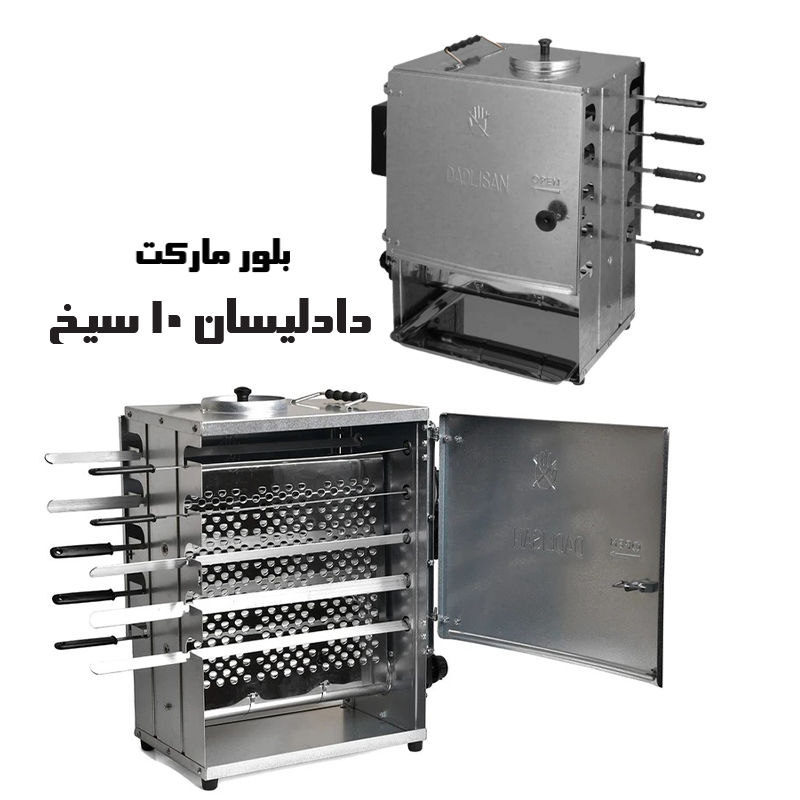 - کبابپز دادلیسان 10 سیخ (10 سیخ کوبیده + 10 سیخ جوجه) / مجموعا جای 10 سیخ دارد.