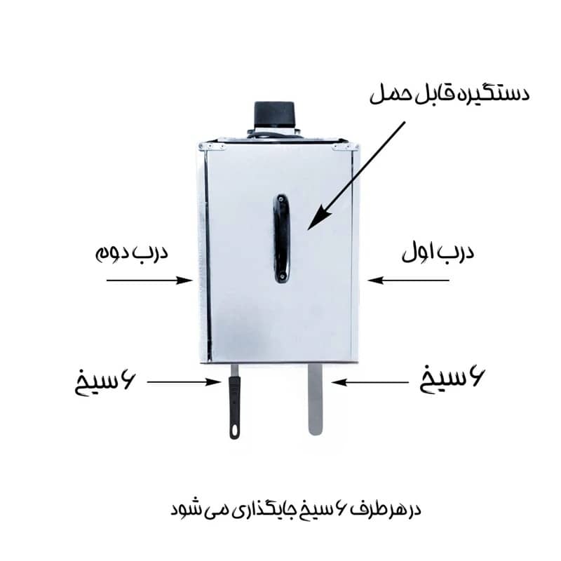 | تعداد سیخ | دارای 24 سیخ 12 سیخ مخصوصجوجه، جگر و 12 سیخ برای کوبیده |