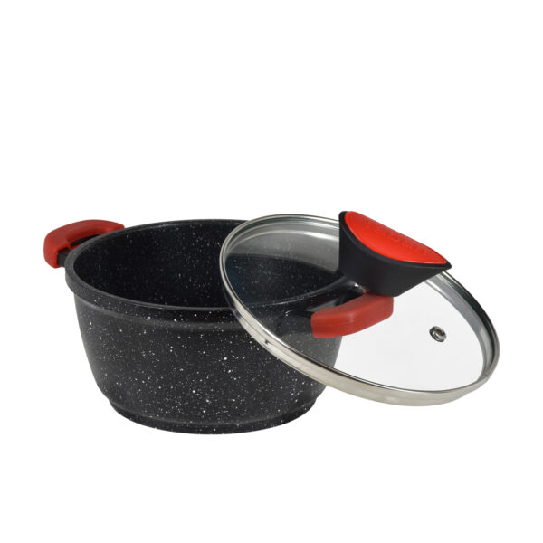 سرویس قابلمه گرانیتی: این قابلمه ها از چدن به همراه روکشی از لعاب ساخته می شوند. ظروف گرانیتی سطح خالخالی شبیه به سنگ گرانیت دارند، به همین دلیل به آن ها گرانیتی گفته می شود. این ظروف را نباید در ماکروفر قرار داد و می توان برای دهه ها از آن ها استفاده کرد.
